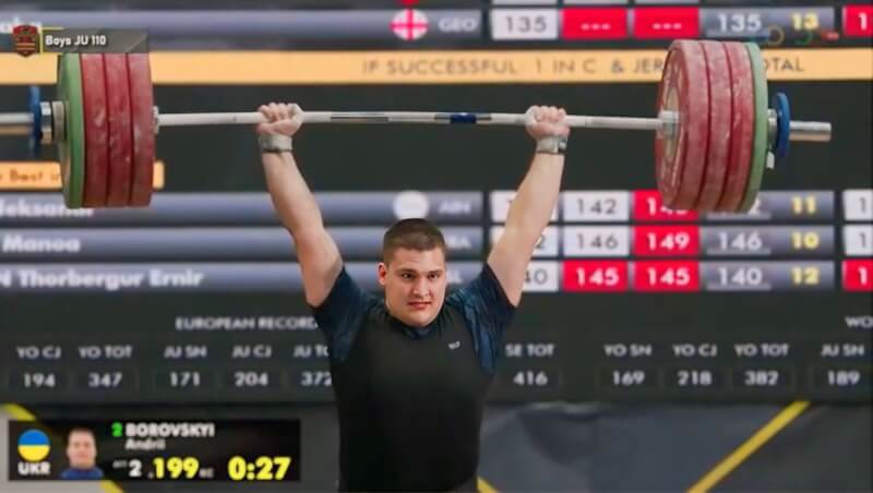 19-річний Андрій Боровський у цій же категорії 110 кг став бронзовим призером у поштовху з результатом 199 кг і посів 5 місце за сумою двоборства (357 кг).